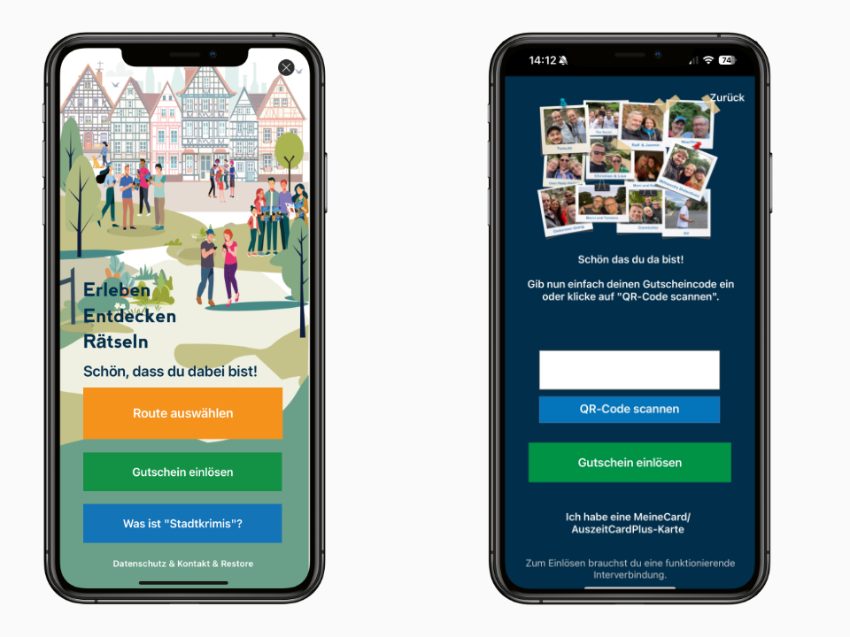 Nach der Bestellung erhältst du einen Gutscheincode, mit dem du die drei Routen in der Stadtkrimis-App freischalten kannst.