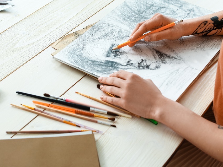 Wir stellen dir die benötigten Werkzeuge wie z.B. Pinsel & Stifte zur Verfügung.