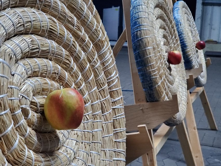 Wir schießen mit handgefertigten Pfeilen und traditionellen Holzbögen auf Scheiben aus Naturmaterialien mit und ohne Trefferfeld. Geschossen wird in zwei Gruppen à acht Teilnehmer, sodass insgesamt 16 Mitarbeiter am Event teilnehmen können. Sollte Ihr Team aus 18 oder 20 Teilnehmern bestehen, finde ich dafür aber auch eine Lösung.