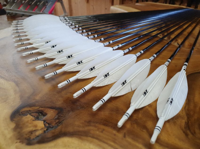 Handgefertigte Pfeile aus Carbon mit Naturfedern